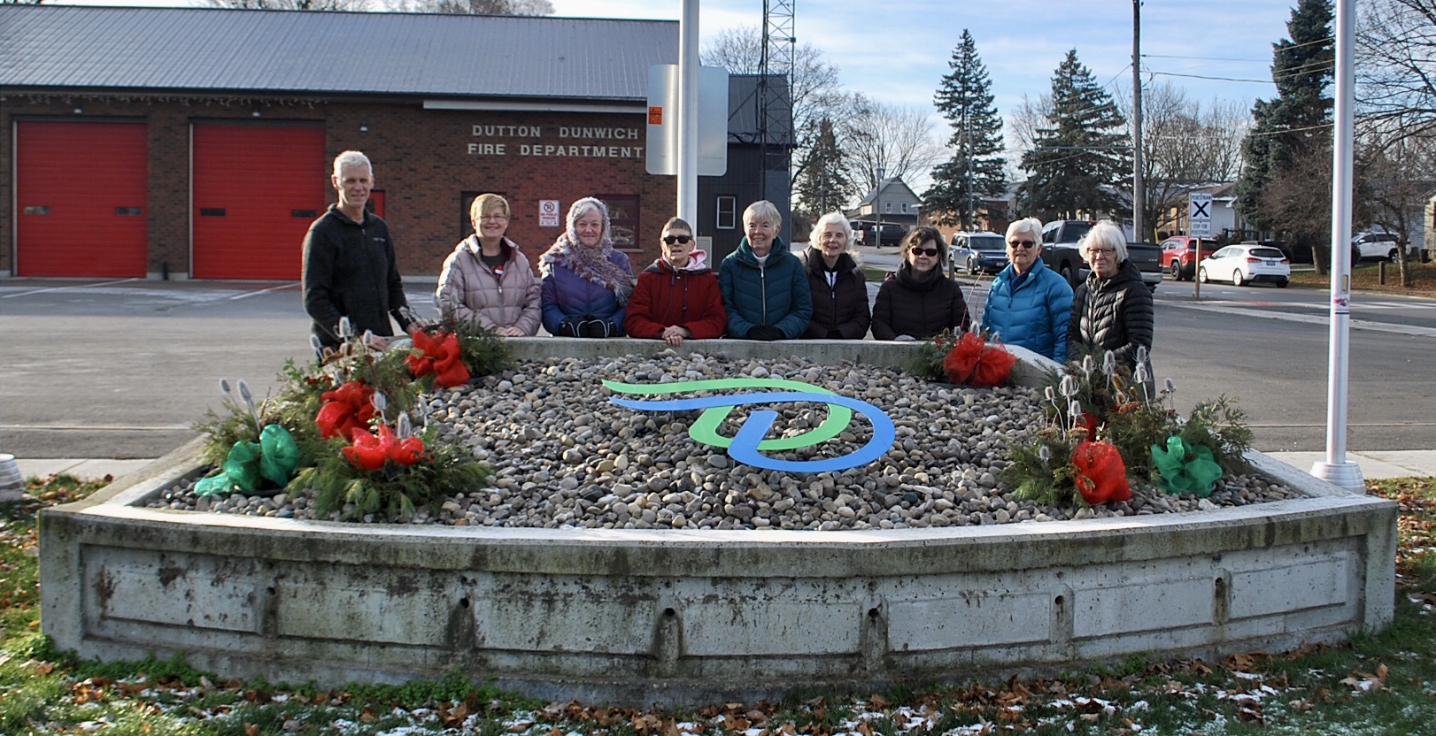 On the left is our latest project, renewal of the garden bed at the Dutton Dunwich Fire Hall with the DD logo and planter pots that will be changed seasonally. Councillor Henry Dryfhout and DDHS Board Members are pictured.